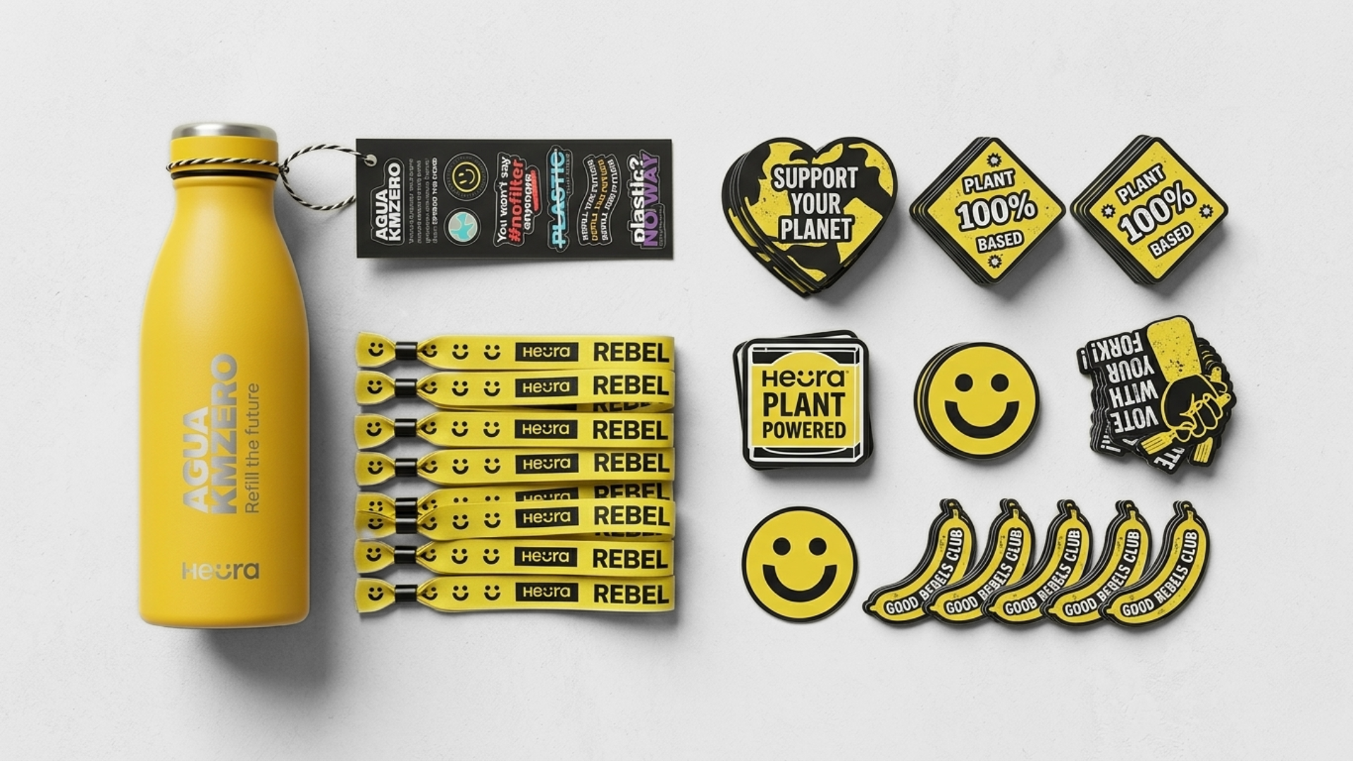 Gestión y expansión de la identidad visual con foco en sostenibilidad. Desarrollo de sistemas aplicados a producto, mobiliario técnico y activaciones de marca mediante colaboraciones estratégicas con partners como Heüra y Guakame Street Food.